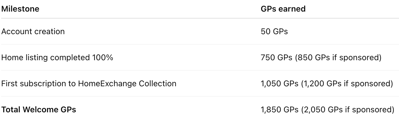There are several ways to earn GuestPoints (GPs) to travel with HomeExchange Collection.
