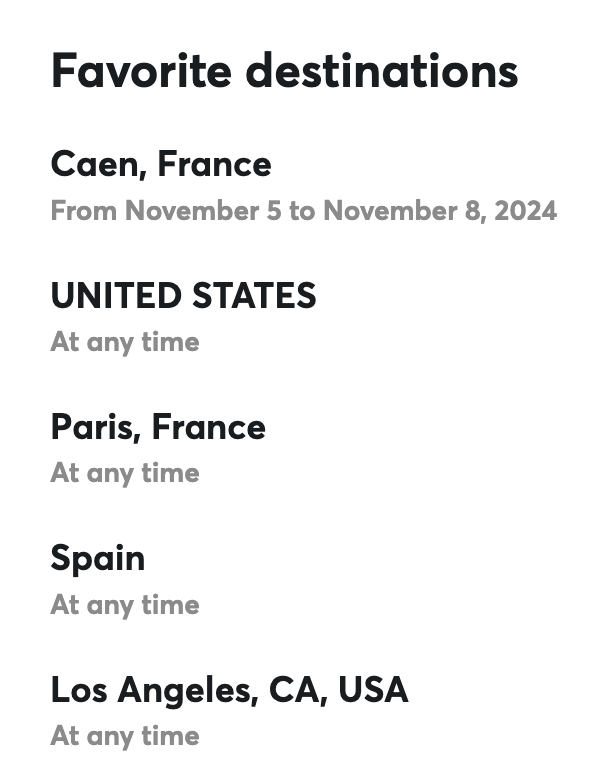 By adding your preferred destinations, you also increase your chances of finding an exchange. When you add your preferred destination, your home will appear in the reverse search for members in that location.
