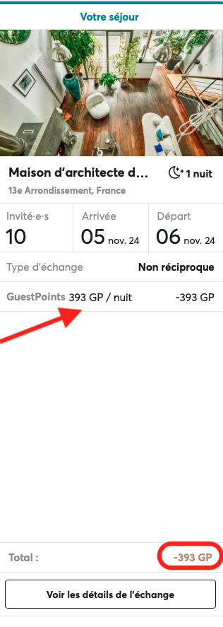 Los GuestPoints se cargan en la cuenta del invitado en cuanto se finaliza el intercambio — incluso si la estancia es dentro de varios meses.