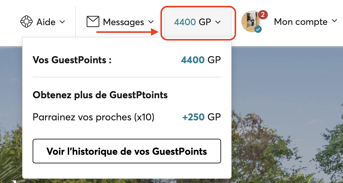 Para consultar cuántos GuestPoints tienes, inicia sesión en tu cuenta y dirígete a la esquina superior derecha de la pantalla — tu saldo aparece junto a tu perfil.