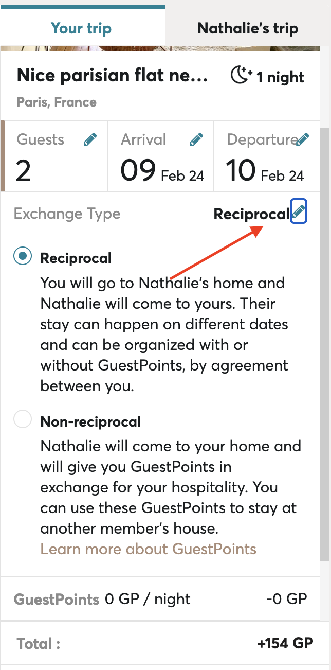 Si deseas finalizar un intercambio recíproco no simultáneo pero uno de los dos no conoce aún las fechas, por favor finaliza dos intercambios no recíprocos, con o sin GuestPoints. Aquí tienes cómo finalizar un intercambio no recíproco.