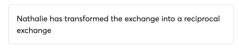 El miembro que envía la solicitud inicial también puede proponer el tipo de intercambio. Si ambos deciden cambiar el tipo de intercambio, pueden hacerlo en los detalles del intercambio, al lado derecho de la conversación. Junto a "Tipo de intercambio", haz clic en el lápiz naranja junto a "intercambio no recíproco". Al hacerlo, se abrirá un menú donde podrás seleccionar "intercambio recíproco":