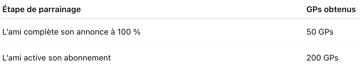 Gagnez jusqu’à 2 500 GPs (maximum 10 filleul·es) :