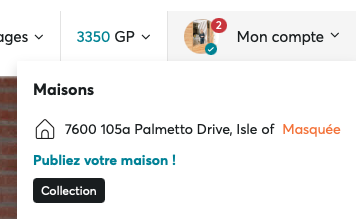 Pour connaître la valeur en GuestPoints de votre maison, cliquez sur l'onglet "Ma maison" en haut à droite de la page d'accueil :
