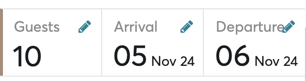 Le membre qui voyage, l’invité, peut modifier les dates et le nombre de voyageurs en cliquant sur le crayon: