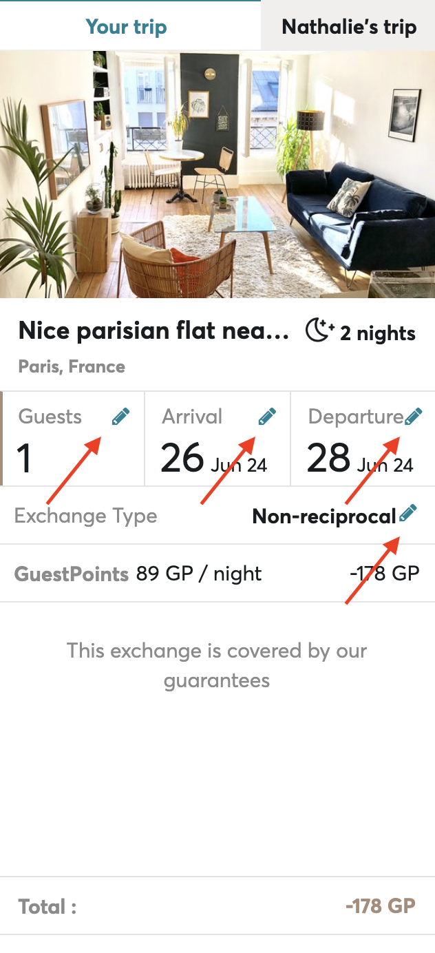 Si vous effectuez un échange réciproque, pensez à consulter à la fois l’onglet Votre voyage et celui du voyage de votre partenaire — vos droits de modification peuvent différer selon l’onglet.