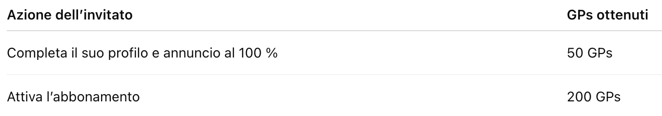 Nota: I 750 GPs per il completamento dell'annuncio potrebbero scadere dopo 3 mesi se non attivi l'abbonamento.