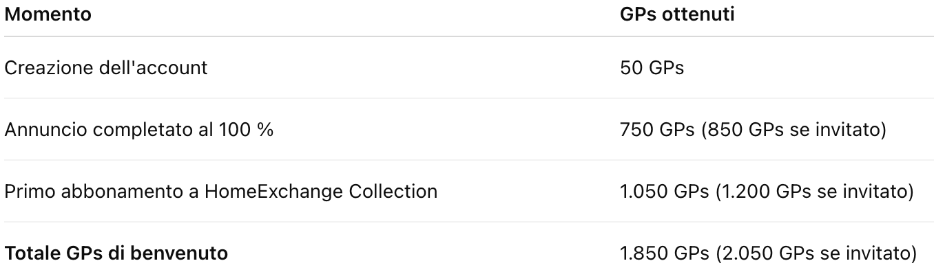 Quando confermi uno scambio e ospiti un altro membro, i GPs concordati per notte ti vengono trasferiti automaticamente e immediatamente. Più ospiti, più puoi viaggiare.