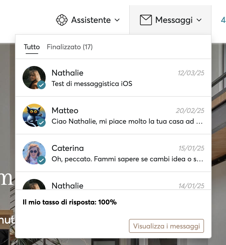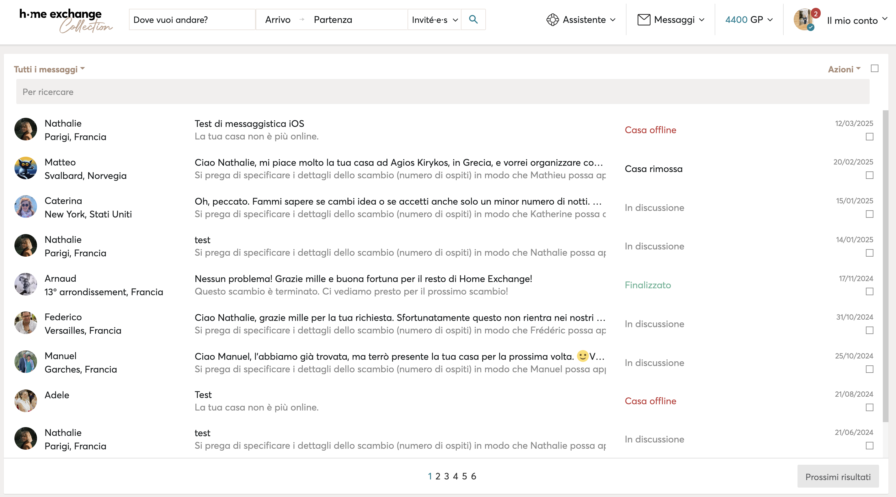 Ogni volta che contatti un membro o che un membro ti contatta, HomeExchange crea una conversazione e ti invia una notifica via e-mail per permetterti di organizzare i dettagli dello scambio. Puoi trovare questa conversazione nei tuoi messaggi HomeExchange.