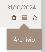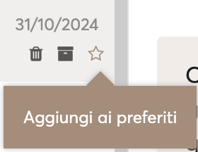 A sinistra, accanto ai nomi nella lista delle conversazioni, puoi archiviare, eliminare o aggiungere una conversazione tra i preferiti tramite le icone corrispondenti: